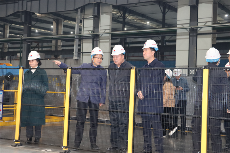 蒿铁群副主任一行听取相关汇报后,充分肯定了义瑞新材项目在全市经济发展中的积极作用,并对公司在智能化发展和坚持绿色低碳转型等方面所取得的成绩给予高度评价。随后,调研组一行走进生产车间,实地查看了1+4热连轧生产线和冷轧生产车间的生产运行情况,并对生产工艺、设备能力进行详细了解。